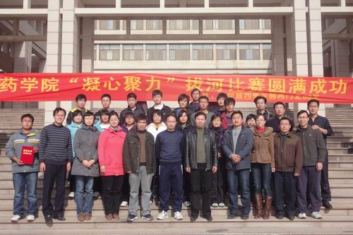 为增强药学院集体责任感和凝聚力,药学院学生会于2010年11月27日上午在教学主楼前举办了“凝心聚力”拔河比赛。药学院党总支书记崔月华、团总支书记杨磊及各教研室老师应邀组队参加了此次活动,参加本次比赛的还有药学院全体学生。