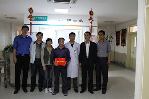 5月22日 ,药学院党总支书记宋军、副书记秦峰及辅导员老师奔赴青岛静康中医肾病医院将一笔饱含爱心的捐助金送到了杨常碧同学母亲的病房。