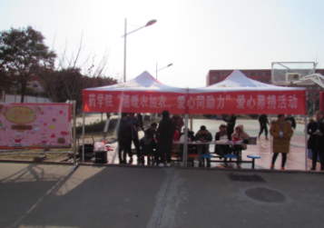 药学院举办“温暖衣加衣,献爱同助力”活动药学院于2017年12月24日在毓秀园内举办“温暖衣加衣,献爱同助力”大型捐衣活动。经过前期的精心筹备和大力宣传,本次爱心活动得到了广大学生的广泛支持与积极参与。活动当天,服务人员各司其职,紧密配合。实践部还特意为捐赠者准备了答谢小礼品,此次活动持续了一天时间,现场热闹有序,前来捐赠的学生络绎不绝,累计捐出爱心衣物10余袋。本次活动中,大家踊跃参与,用自己的微薄之力帮助需要帮助的人,将温暖传递,将爱延续,充分体现出大学生助人为乐、勇于奉献的精神。