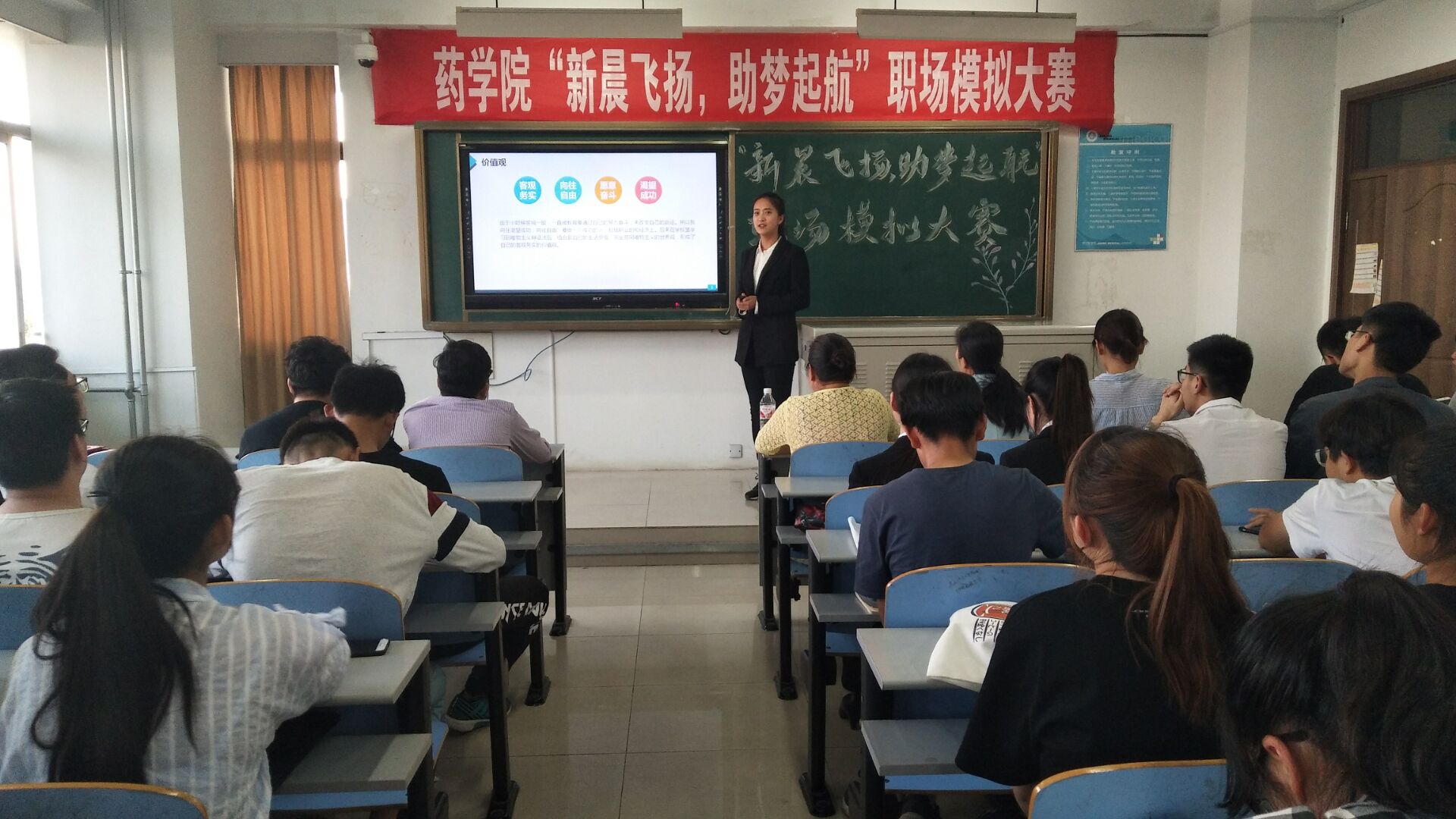 2018年5月31日下午,药学院与恒瑞集团新晨医药有限公司于0512教室联合举办“新晨飞扬,助梦启航”职场模拟大赛。参赛选手激扬文字,大展风采。本次比赛共决出一等奖一名,二等奖两名,三等奖三名。