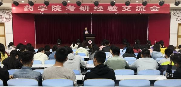 5月15日晚7:30,药学院于教学楼一楼报告厅举行2019年考研经验交流会。药学院考研学生代表王萍等4人分享了考研经验。2016级学生参加会议。
