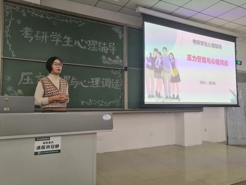 为帮助考研学生减轻心理压力,缓解焦虑情绪。11月17日,药学院邀请学生工作处心理健康教育指导中心崔玉玲老师,作《压力管理与心理调适》专题心理辅导讲座。