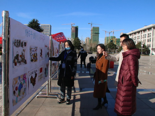 我院学子踊跃参赛,上交作品种类繁多、别出心裁,构思精巧,彰显出建党百年的光辉历程,药院二十载的砥砺笃行,充分展现了药院学子的才华与智慧。经前期专业教师、学生代表评选,本次决赛共有23件作品参与展出。决赛现场气氛浓厚,我院师生纷纷前来观看,讲解员为老师、同学们细致解读参赛作品的创作理念以及深层含义,获得了各位领导老师的高度赞誉。最后,经过线下线上投票,评出一等奖一幅、二等奖两幅、三等奖三幅。