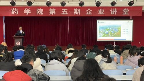 12月8日,为庆祝药学院建院20周年,药学院举办第五期企业讲堂,鲁南制药集团山东新时代药业有限公司宣传部部长滕略波应邀作题为《走近鲁南制药的企业文化》的报告。滕略波以鲁南制药的发展轨迹为脉络,带领学生们了解企业文化;结合个人工作经历现身说法,引领学生们树立正确的价值观、就业观,积极进取,全面发展。听取报告后,同学们纷纷表示,在今后的学习和生活中,要学理论强技能,脚踏实地,勇于创新,不断增强自身专业技能,成就更优秀的自己,为医药事业贡献青春力量。药学院200余名师生听取报告。