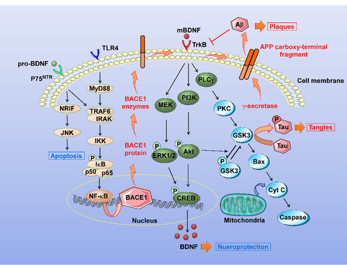 文章从基因结构、表达、功能、体内分布和检测方法等多个层面总结和分析了BDNF及其不同形式(pro-BDNF、mBDNF、BDNF pro-peptide)的研究现状;整合临床和基础研究结果全面探讨了BDNF在AD中的作用;从神经保护、tau蛋白磷酸化、Aβ产生和神经炎症反应等多个角度揭示了BDNF在AD发生发展中的作用靶点(或结合位点)以及分子信号转导通路;重点突出了不同形式的BDNF在AD中作用各异,呼吁应从BDNF具体到pro-BDNF、mBDNF等不同形式,更加具体地研究其在AD中的意义。