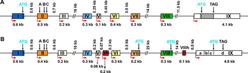 (A:啮齿类动物BDNF基因结构;B:人BDNF基因结构)