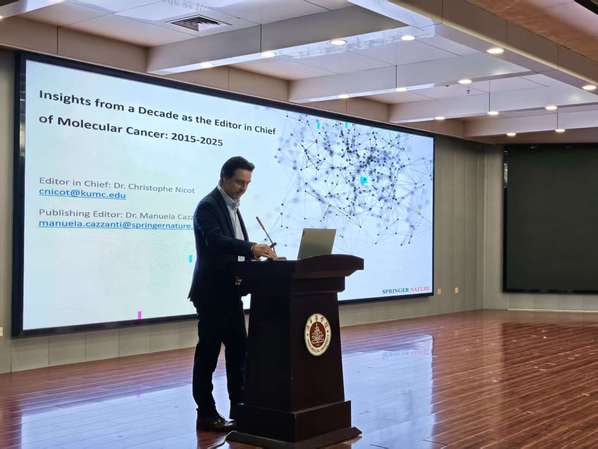 Christophe Nicot 教授以《Insights from a Decade as the Editor in Chief of Molecular Cancer: 2015-2025》为题,介绍了Molecular Cancer期刊基本情况,并从国际期刊主编视角分享了论文撰写、投稿、审稿过程中需注意的关键点,包括常见拒稿原因、论文撰写中AI工具的使用及图片规范等内容。